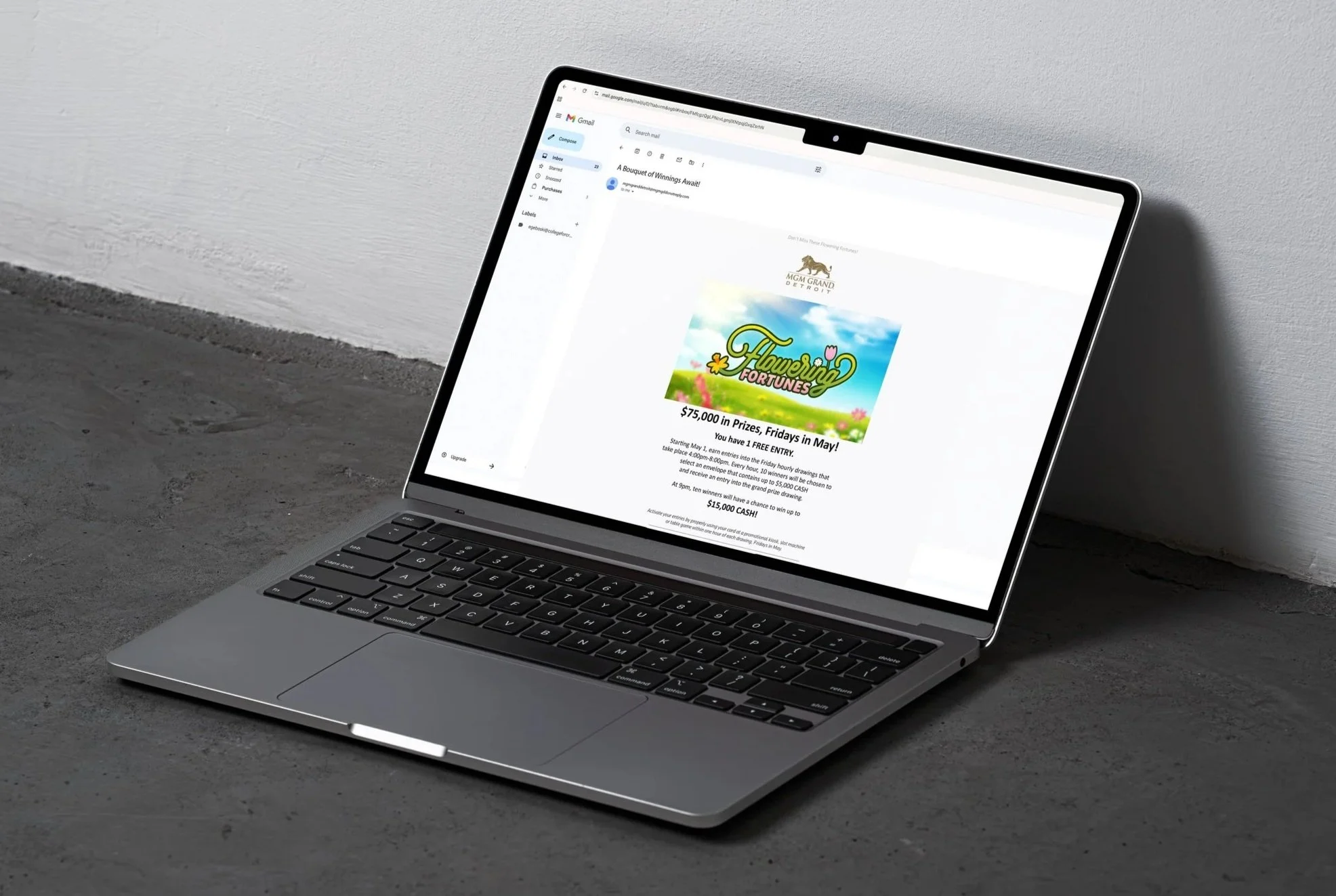 I am responsible for creating new looks and design systems each month for various casino promotions. I want guests to feel excited about their offers each month while still upholding an elevated feel to fit within the MGM Grand Detroit brand. I start with designing the logos and then expanding the look and feel across various formats including printed assets, billboards, email marketing, player kiosk screens and more.